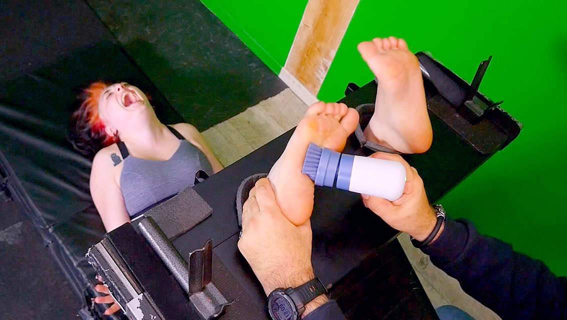 The gorgeous Madie is immobilized with her ass up for a special tickling, spanking, flogging and bastinado punishments but the session is mostly tickling. She is at the mercy of the FT Tickler who has so much fun with all her most sensitive spots and he drives her crazy in different ways with his sadistic hands and different tickle tools. He punishes her helpless bare feet, her buttocks, legs, hips, sides, neck to her real limits and this is really hot to watch especially when she cracks. Madie is an incredible submissive and a wonderful tickle toy who can be punished all day long till she goes nuts.