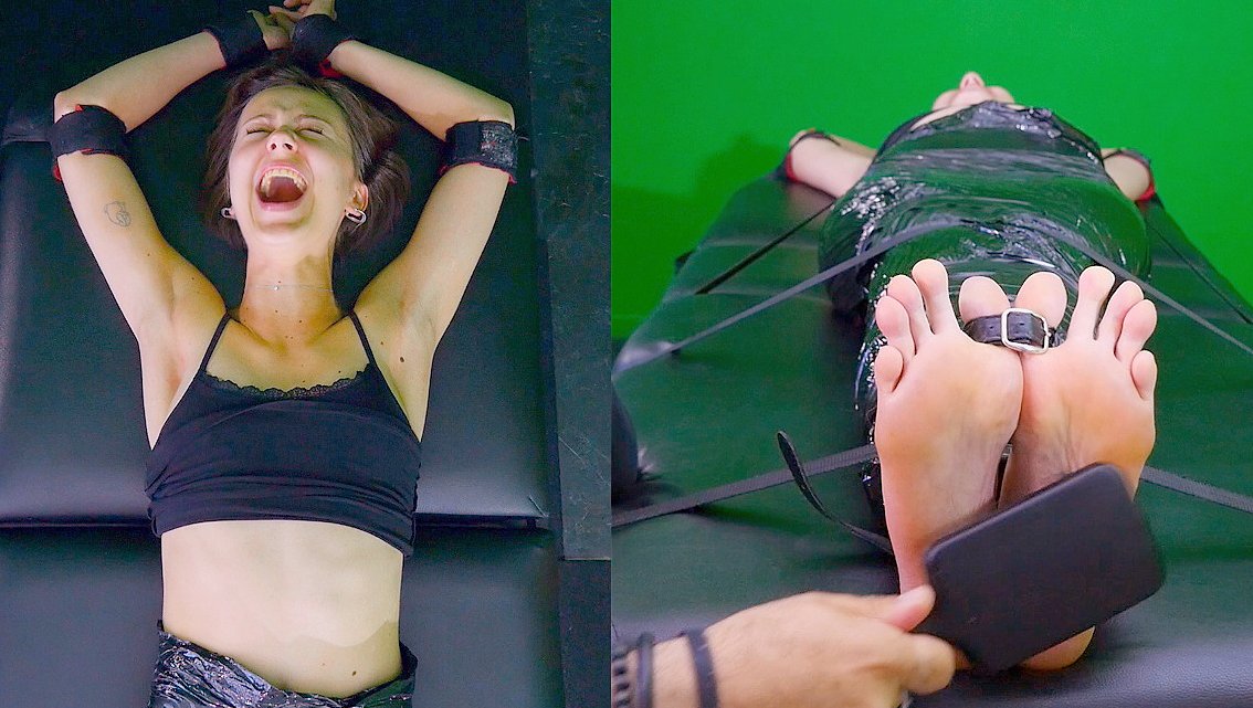 Helina is stronly immobilized on a little bed and totally at the mercy of the FT Tickler. She is tickled from head to toes to hysteria, till she loses all control of herself. Helina's upperbody is tormented during the first half of the clip then it's the turn of her ultra sensitive feet to be tickled mercilessly. Helina's entire body is super ticklish and her explosive reactions are always a delight. The guy shows her no mercy and punishes all her most sensitive spots till she cracks.